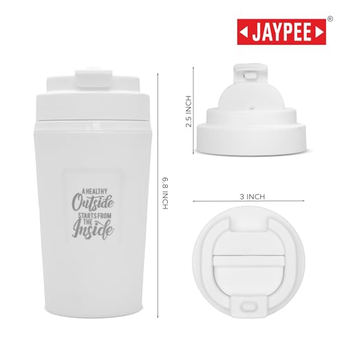 JAYPEE Snap Sip Steel Insulated Coffee Mug Hot & Cold Stainless Steel Mug Travel Mug for Car Tumbler Bottle PU Insulated Tea Cup Spill Proof Suitable for Any Beverage 385 ml White