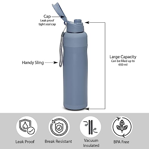 JAYPEE Haton 650ml Inner Stainless Steel Insulated Hot & Cold Water Bottle for kids,Leak Proof Bottles for kids, Ideal for Office,Campaign,Hiking,Travel & Treking Bottle, Blue
