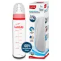 LuvLap Essential Slim Neck Glass Feeding Bottle, 250Ml, 3M+/Babies Upto 3 Years, Made of Borosilicate Glass, Bpa Free, Ergonomic Shape is with Anti Colic Nipple, Pack of 1, White & Red