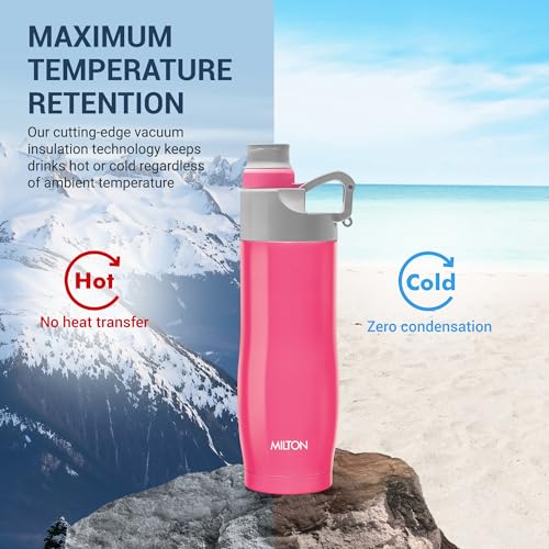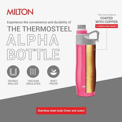 The Milton Alpha is an unique style compact water bottle. The Alpha is a vacuum-insulated steel compact water bottle that keeps your beverages hot or cold for hours. This can be use to carry tea coffee juice etc.