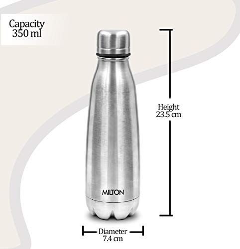 Milton Double walled vacuum insulated stainless steel water bottle keeps beverages hot and cold for 24 hours. Inside copper coating for better heat retention. This bottle is made from high-quality steel food-grade and BPA-free stainless steel material that makes the bottles safe for use on a regular basis. The taste and nutritive value of the drinks remains intact for a 24 hours making the bottle very appropriate choice for storing beverages. 100% Food grade. The mouth makes it easy to drink without spilling wherever you go whether it is work travelling and gym. This double walled vacuum insulated Stainless Steel bottle is easy to carry they are highly durable and can withstand daily use with ease. You can use these bottles to store water and other beverages without the fear of breaking them. The ergonomic design of the bottles makes it easy for you to hold them while pouring out the beverage. These bottles can even be carried in the side pocket of your backpack.