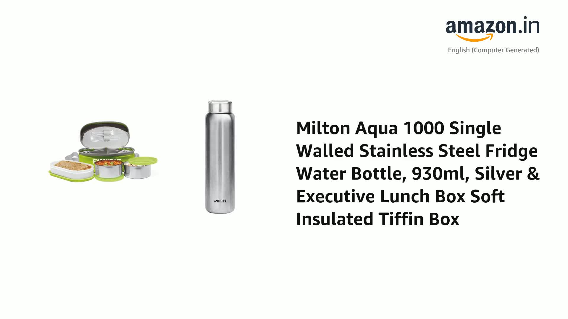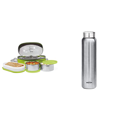 Pattern:Tiffin Box + SS Bottle 1LMilton Executive Lunch Box Soft Insulated Tiffin Box (2 SS Container1 Microwave Safe Container)GreenThe Milton Executive Series Lunch Box is best to cater the needs of people taking lunch to School College or Office.Milton Aqua 1000 Single Walled Stainless Steel Fridge Water Bottle 950ml SilverElegant shape easily fit in refrigerator Leak Free Sturdy & Odourless Wide mouth easy to clean I Available in attractive colors and Steel 1 year Warranty superior 18/8 rust proof steel