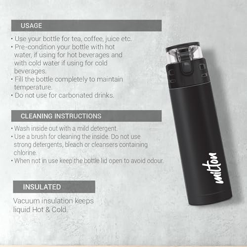 Travel around the world without a care with this trendy insulated bottle from Milton. This gorgeous beverage bottle has been fabricated with stainless steel inside and out making it a trustworthy companion to travel with. Its vacuum insulated construction keeps both hot and cold beverages pleasant to consume for long durations. The leak-proof construction and hassle-free maintenance make it an easy choice for your gym school or travel needs. The ultimate way to quench your thirst while on the go this bottle comes with a lock-protected lid that can be clicked open to enjoy a delightfully refreshing swig. The sleek structure of this Milton bottle makes it ideal for carrying with you on any day-trip or hike. Its slender and compact shape allows it to be slipped into the side compartments of your backpack for easy access. The leak-proof lid keeps your drink secure the whole time. There is an additional loop at the back which can be used to carry the bottle with your hand as well. This Product Is Under 1 Year Warranty From The Date Of Retail Purchase Against Any Manufacturing Defects In Material And Workmanship. The Warranty Does Not Cover Damages Resulting From Accidents Mishandling Or Tampering With The Mechanism. Warranty Valid Against Producing Original Bill Endorsed By Seller.