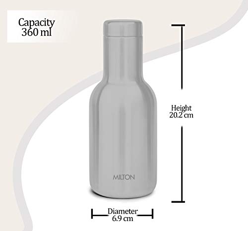 MILTON Charm 400 Double Walled Vacuum Insulated Stainless Steel 24 Hours Hot or Cold Water Bottle (360 ml, Silver)