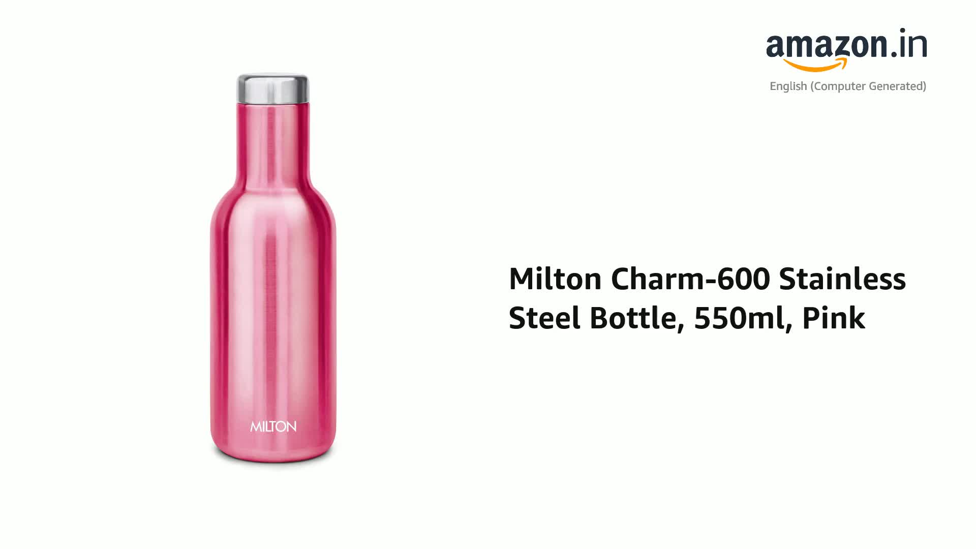Milton Charm 600 Double Walled Vacuum Insulated Stainless Steel 24 Hours Hot or Cold Water Bottle, 550 ml, (Pink)