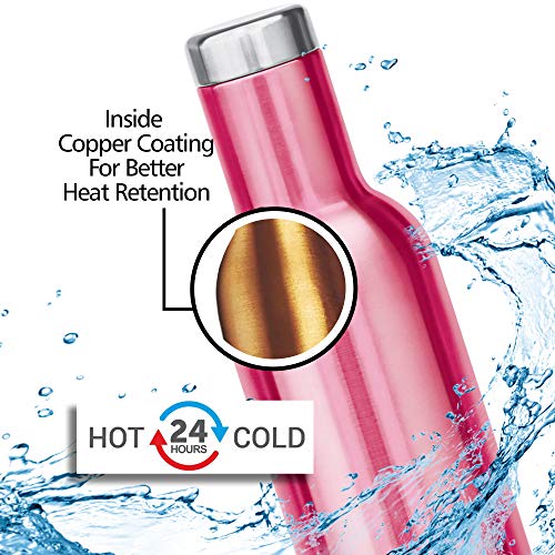 • Double walled Insulated stainless steel interior that regulates temperature and keeps the drink hot or cold for 24 hours. Made of 18/8 Stainless steel bottles which are highly durable and can withstand daily use with ease.