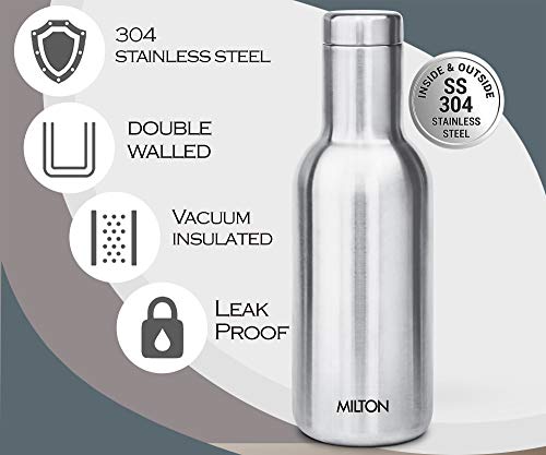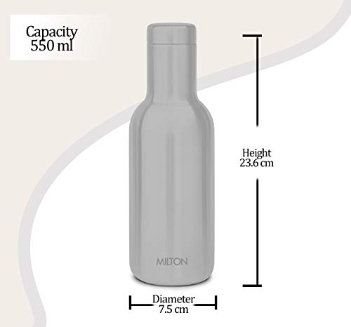Milton Charm 600 Stainless Steel 24 Hours Hot or Cold Water Bottle, 550 ml, Silver