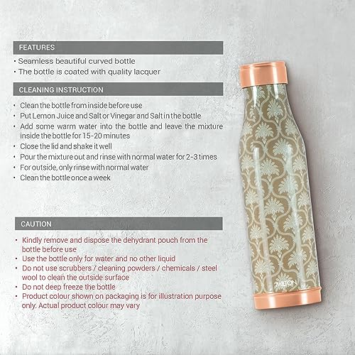 Copper Charge an Ayurvedic boon brought to you in the form of a bottle by Milton. Made of 99.9% pure copper Copper Charge is perfect for those who lead an active lifestyle. This Bottle is Made of pure copper this is BPA free and made of high-quality food-grade material. This Copper bottle is made with quality copper material with a fine lacquer for the perfect finish and long-lasting color this is BPA free and made of high-quality food-grade material. The material of the bottle makes it completely safe to drink water in it. Keep water overnight in the copper vessel and it will imbibe all the medicinal and Ayurveda benefits to the water. It comes in a sophisticated and classy design making this bottle an exquisite piece of functional art. The copper Bottle with its sleek finish is definitely a must-have for the health and fitness enthusiasts. Drink it empty stomach every morning and see the benefit. In addition to that it comes in a sophisticated and classy design making this bottle an exquisite piece of functional art. This bottle is perfect for self use also. On the special occasion of Rakhi Diwali Christmas Anniversary Birthdays etc. this gift set can be readily turned into a wonderful Gift Item.