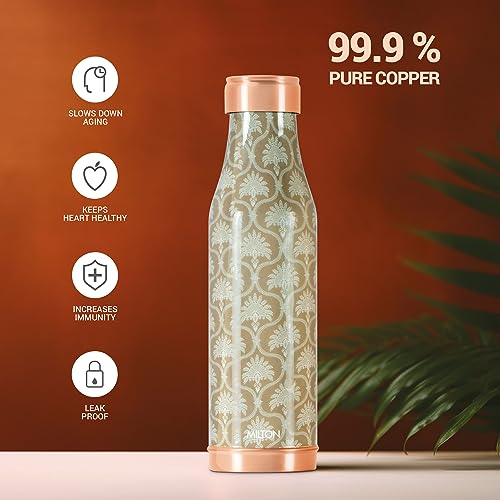 Copper Charge an Ayurvedic boon brought to you in the form of a bottle by Milton. Made of 99.9% pure copper Copper Charge is perfect for those who lead an active lifestyle. This Bottle is Made of pure copper this is BPA free and made of high-quality food-grade material. This Copper bottle is made with quality copper material with a fine lacquer for the perfect finish and long-lasting color this is BPA free and made of high-quality food-grade material. The material of the bottle makes it completely safe to drink water in it. Keep water overnight in the copper vessel and it will imbibe all the medicinal and Ayurveda benefits to the water. It comes in a sophisticated and classy design making this bottle an exquisite piece of functional art. The copper Bottle with its sleek finish is definitely a must-have for the health and fitness enthusiasts. Drink it empty stomach every morning and see the benefit. In addition to that it comes in a sophisticated and classy design making this bottle an exquisite piece of functional art. This bottle is perfect for self use also. On the special occasion of Rakhi Diwali Christmas Anniversary Birthdays etc. this gift set can be readily turned into a wonderful Gift Item.