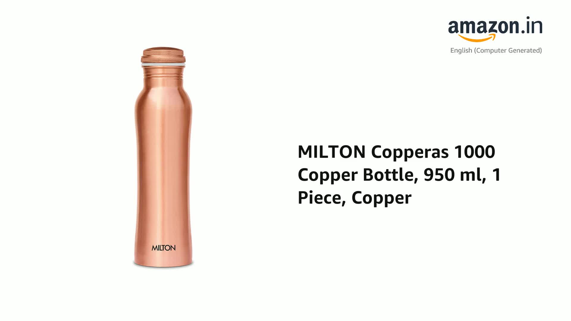 Size name:Copperas 920mlMilton presents 100% pure leak proof Copper Bottle with multiple health benefits: Copper is one of the metals preferred by our grandparents and ancestors for various health benefits and cheapest solution to clean water. The best way to reap the best benefits from Copper is to fill water in a Copper cup leave it overnight and drink the water very next morning. According to Ayurveda drinking Copper-Enriched water first thing in the morning on an empty stomach helps balance all three doshas (Kapha Vata and Pitta). This also ensures proper functioning of different organs and several metabolic processes. Water in a Copper vessel can be stored for a long period of time and it never becomes stale. Copper is an essential trace mineral that is vital to human health. It has antimicrobial antioxidant anti-carcinogenic and anti-inflamtory properties. It also helps neutralize toxins. Unlike some nutritional elements the body cannot synthesize copper Drinking 2 to 3 glasses of water that has been stored in a copper vessel is another easy way to supply your body with enough Copper. Cleaning Instructions-Clean bottle from inside before use: Mix Vinegar & salt or Lemon & salt with water then put in bottle - Close the lid and shake the bottle thoroughly - Pour out the Mixture and rinse will with clean water - Do not use scrubs to clean outer surface.