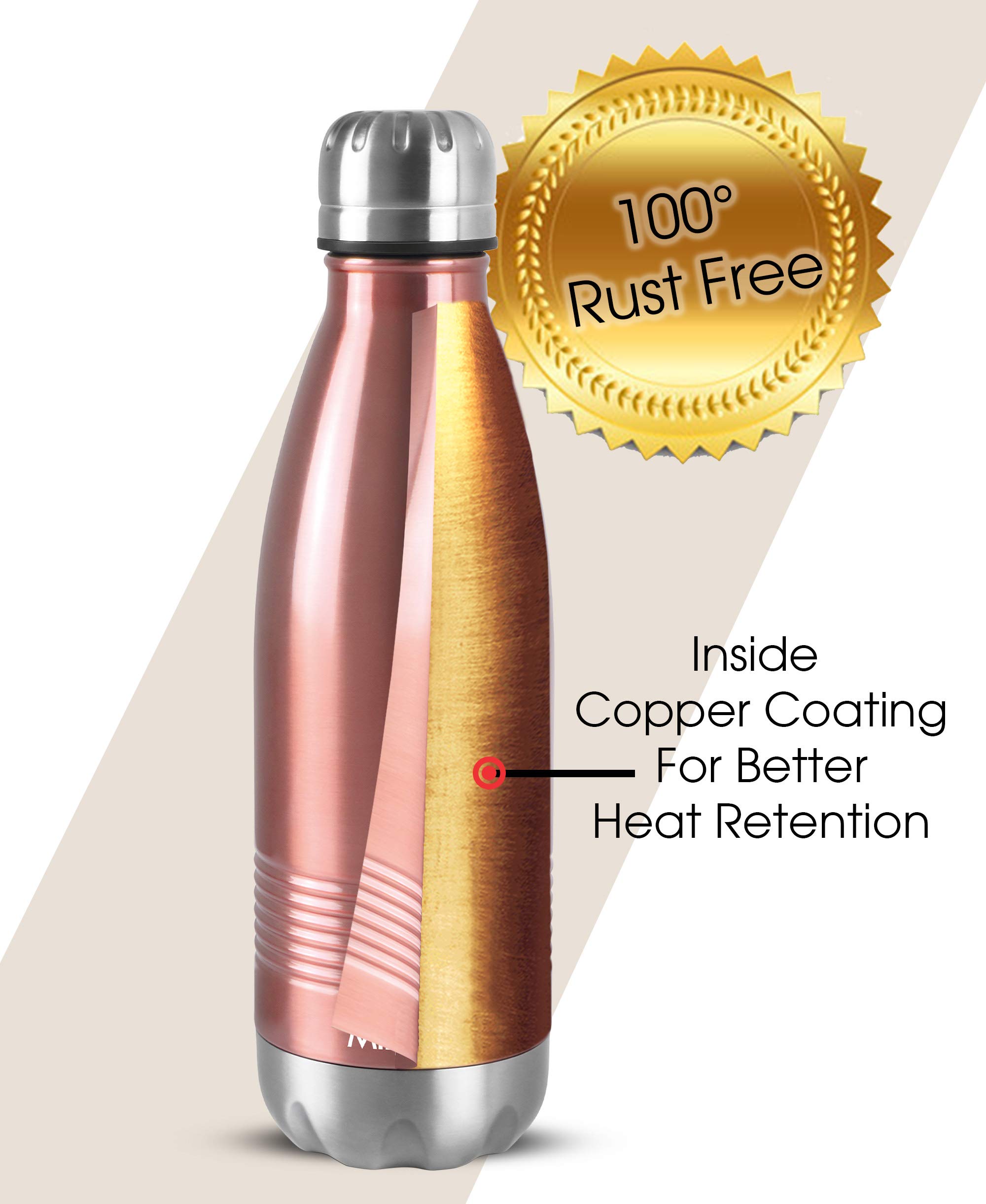 MILTON Duo DLX 750 Thermosteel Bottle 700 ml Water Bottles 24 Hours Hot and Cold Easy to Carry Easy Grip Rust Proof Tea Coffee Office Travel Bottle Rose Gold