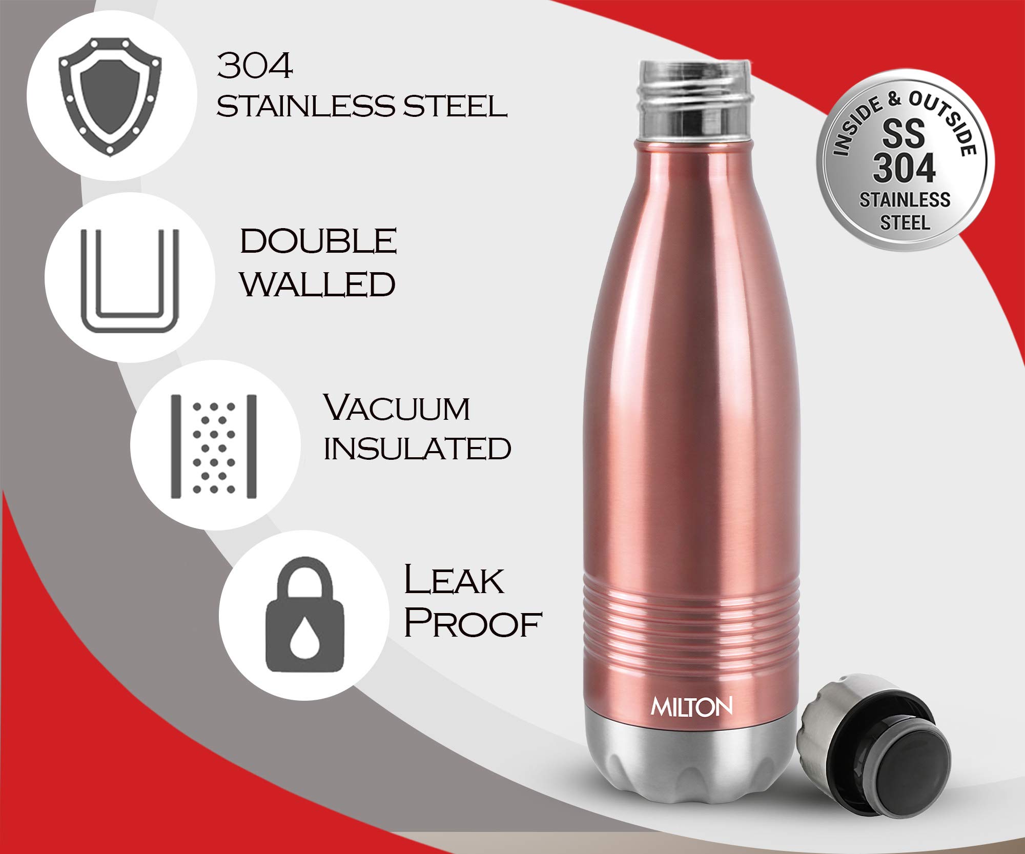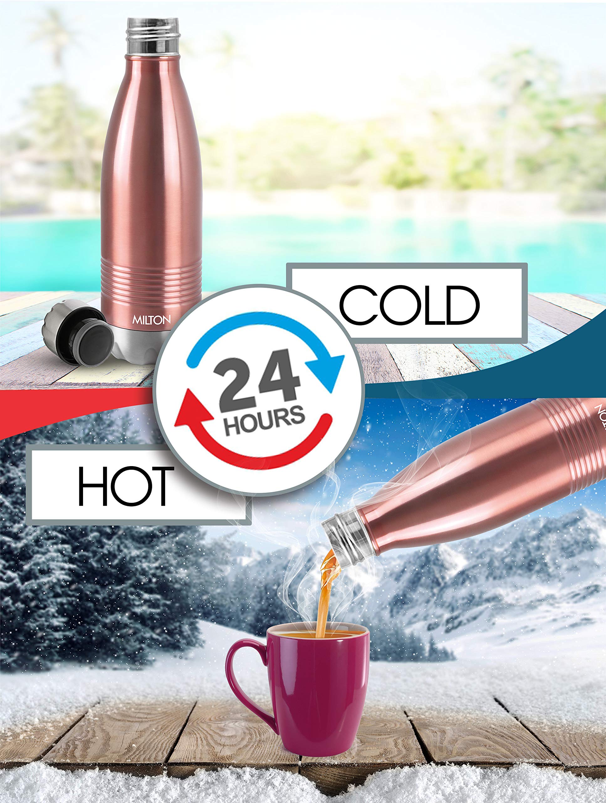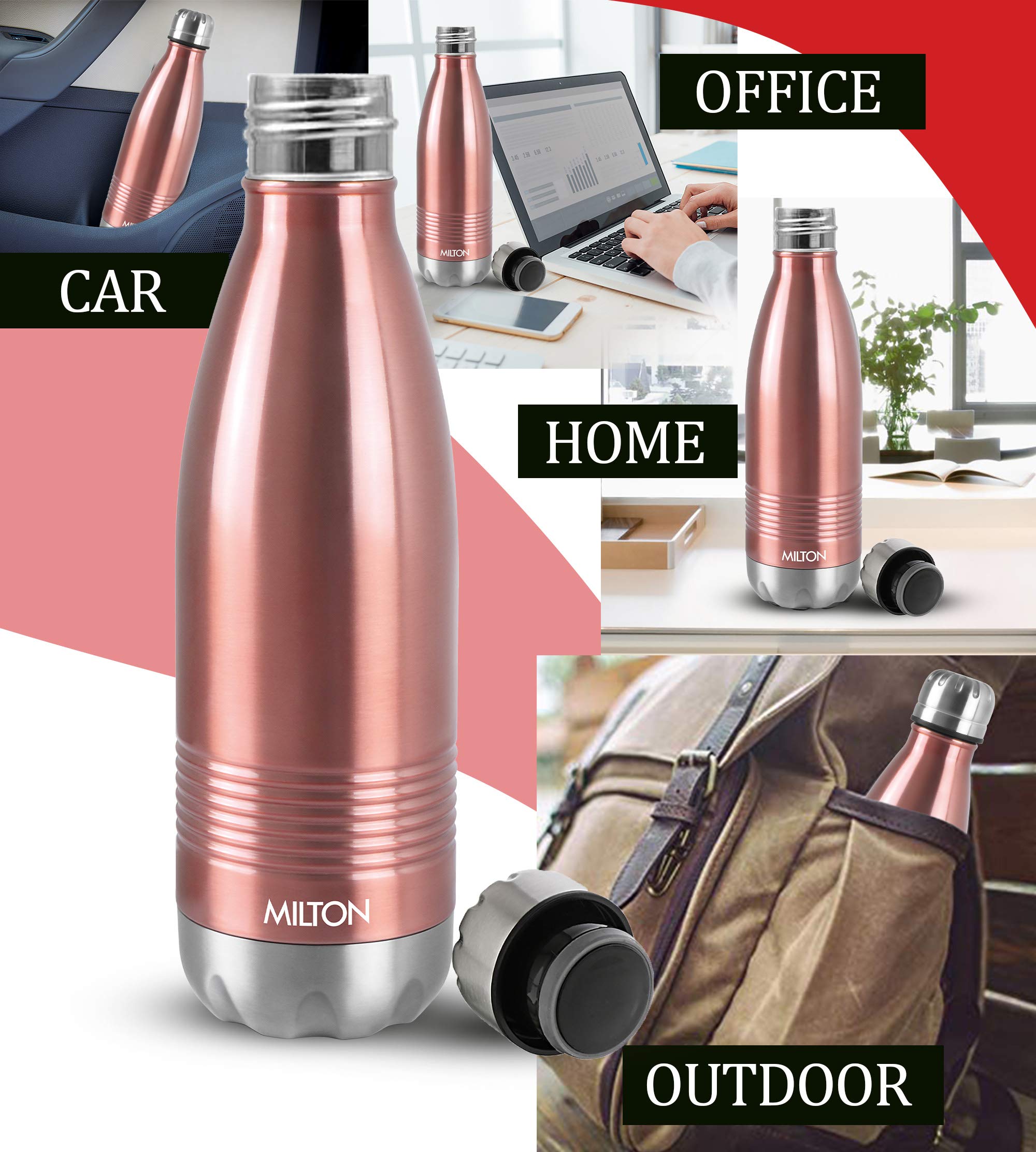 HomeKitchenContainersBottlesMILTON Duo DLX 750 Thermosteel Bottle 700 ml Water Bottles 24 Hours Hot and Cold Easy to Carry Easy Grip Rust Proof Tea Coffee Office Travel Bottle Rose Gold