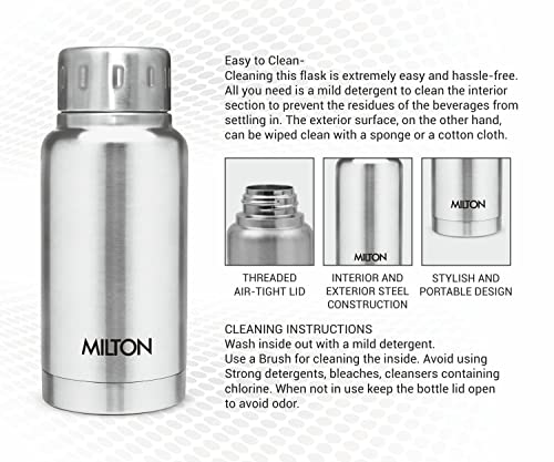 Milton Double walled vacuum insulated stainless steel water bottle keeps beverages hot and cold for long hours. Inside copper coating for better heat retention. This bottle is made from high-quality steel food-grade and BPA-free stainless steel material that makes the bottles safe for use on a regular basis. The taste and nutritive value of the drinks remains intact for a long hours making the bottle very appropriate choice for storing beverages. 100% Food grade. The mouth makes it easy to drink without spilling wherever you go whether it is work travelling and gym. This double walled vacuum insulated Stainless Steel bottle is easy to carry they are highly durable and can withstand daily use with ease. You can use these bottles to store water and other beverages without the fear of breaking them. The ergonomic design of the bottles makes it easy for you to hold them while pouring out the beverage. These bottles can even be carried in the side pocket of your backpack.