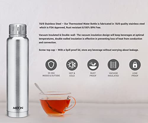 Milton Elfin Thermosteel 750 ml Water Bottle, 24 Hr Hot and Cold I Leak Proof Lid, ISI Certified I Vacuum Insulated I for Office, Gym, School I Silver