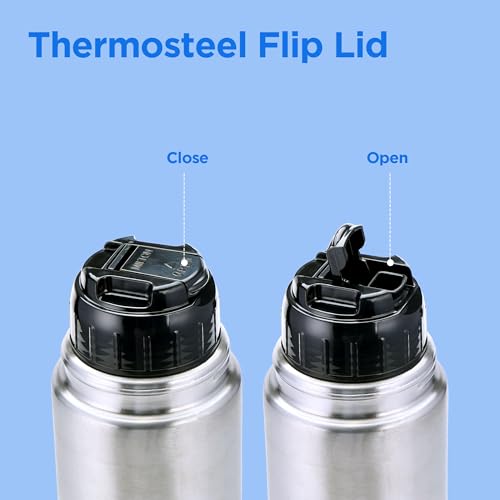 Presenting thermosteel bottles with a unique flip lid that makes pouring completely hassle-free and spill-free for you! The lid of this flask doubles up as a cup for drinking. It is vacuum insulated with inner and outer steel and is designed to keep your beverages hot or cold for 24 hours. When it comes to drinking fresh and clean water during travelling it is best way to carry water from home to avoid any contamination. The best way to remind yourself to drink water is to carry a flask with you. This bottle is made of stainless steel and it is durable user-friendly and highly functional. It not only keeps the water clean but also retains temperature for up to 24 hours. So it is not only ideal for carrying water but also for hot and cold beverages. Hence carry your favourite hot beverage for a day¢¬s journey during winter and simple cold water or juice during summer to refresh yourself while travelling. A unique flip lid that makes pouring completely hassle-free and spill-free the lid of this bottle doubles up as a cup for drinking. Ideal for gifting.