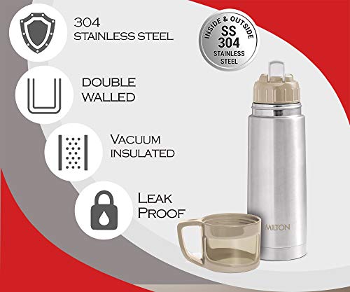 MILTON Glassy 350 Thermosteel Vacuum Insulated Double Walled Flask with Drinking Cup lid & Jacket, 350 ml Water Bottles,24 Hours Hot & Cold, Easy to Carry,Rust Proof, Tea, Coffee, Travel Bottle,Grey