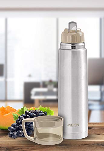 MILTON Glassy 750 Thermosteel Vacuum Insulated Double Walled Flask with Drinking Cup lid & Jacket, 750 ml Water Bottles,24 Hours Hot & Cold, Easy to Carry,Rust Proof, Tea, Coffee, Travel Bottle,Grey