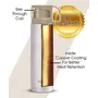 • Double walled Vacuum insulated technology keeps beverages hot or cold for 24 hours Inner copper coating for better temperature retention. It comes with a transparent plastic top lid with a handle doubles as a cup just press the button on the inner lid and