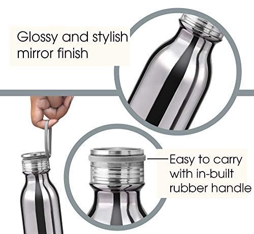Presenting a stylish glossy mirror finish bottle. When it comes to drinking fresh and clean water during travelling it is best way to carry water from home to avoid any contamination. The best way to remind yourself to drink water is to carry a bottle with you. This bottle is made of stainless steel and it is durable user-friendly and highly functional. It not only keeps the water clean but also retains temperature for 24 hours. So it is not only ideal for carrying water but also for hot and cold beverages. Hence carry your favourite hot beverage for a day journey during winter and simple cold water or juice during summer to refresh yourself while travelling.