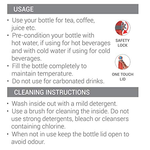 Milton Double walled vacuum insulated stainless steel water bottle keeps beverages hot and cold for hours. This bottle is made from high-quality steel food-grade and BPA-free stainless steel material that makes the bottles safe for use on a regular basis. The taste and nutritive value of the drinks remains intact. Making the bottle very appropriate choice for storing beverages. 100% Food grade. The mouth makes it easy to drink without spilling wherever you go whether it is work travelling and gym. This double walled vacuum insulated Stainless Steel bottle is easy to carry they are highly durable and can withstand daily use with ease. You can use these bottles to store water and other beverages without the fear of breaking them. The ergonomic design of the bottles makes it easy for you to hold them while pouring out the beverage. These bottles can even be carried in the side pocket of your backpack.