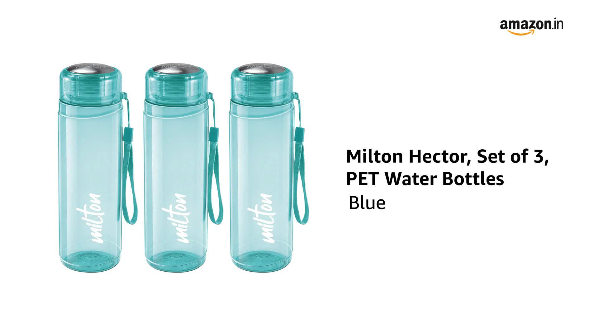 • Color: Blue; Material: Plastic; Package Content: 3 - Pieces Hector Pet Water Bottle Set (1000 ml Each); Dimension in cms (L x W x H): 8 x 8 x 25.5