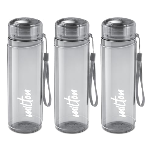 MILTON Hector 1000 Pet Water Bottles, Set of 3, 1 Litre Each, Grey, Reusable Plastic Fridge Bottle, BPA Free and Leak Proof Bottles for Travel, Work