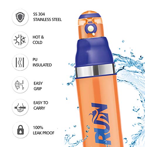 Your kid's best friend! Which is important for KDs to stay hydrated at home school and play. High levels of activity and competitive sports demand water and other beverages regularly for healthy development. Your child may need a bottle that works for both hot and liquids. This bottle is fabricated with insulation technology which keeps beverages hot or . The taste and nutritive value of the drinks remains intact for a long time making the bottle very appropriate choice for storing beverages. It has a one touch lid. It is leak proof and easy to carry anywhere. Convenient size fits in the side pocket of bags which you can carry for school Picnic car bottle holder etc.