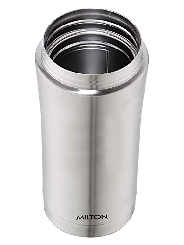 Ideal beverage carrying solution whether you prefer having your own coffee or tea at office or like to have a fresh cup of buttermilk or your favourite fruit juice the Milton Optima Thermosteel flask is the perfect solution for your beverage consumption needs. Its compact size makes it an easy fit in most office bags and backpacks adding to its portability feature. Use this flask to carry tea coffee fruit juices lassi and other beverages wherever you go. Unique design with temperature retention a rich steel finish on the outside the Milton Thermosteel Optima flask helps make a style statement wherever you carry it along. The insulation ensures that your beverages stay hot or cold for hours for a perfect consumption experience. Furthermore it features a separate compartment for carrying sugar medicine or tea bags on the go. Easy to use clean and maintain using this Milton Thermosteel Optima flask is an easy task as you simply have to fill it up with your favourite beverage preferably to the brim to maintain temperature for a long time. It is easy to clean as you simply need to use a mild soap solution and avoid strong detergents to keep it looking new for a long time. To avoid odours developing over time keep the flask lid open when not in use.