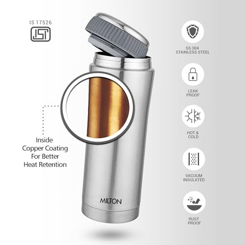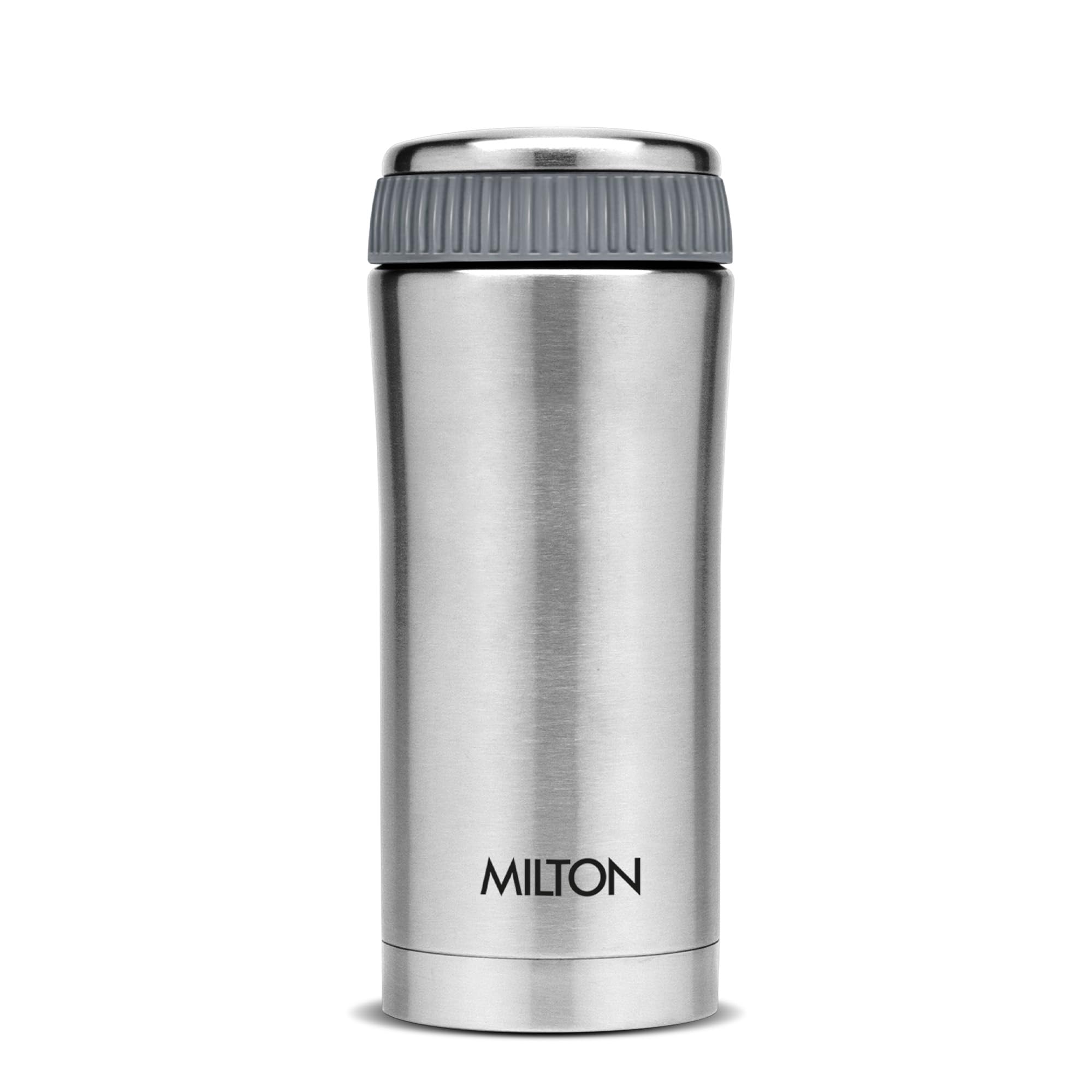 Ideal beverage carrying solution whether you prefer having your own coffee or tea at office or like to have a fresh cup of buttermilk or your favourite fruit juice the Milton Optima Thermosteel flask is the perfect solution for your beverage consumption needs. Its compact size makes it an easy fit in most office bags and backpacks adding to its portability feature. Use this flask to carry tea coffee fruit juices lassi and other beverages wherever you go. Unique design with temperature retention a rich steel finish on the outside the Milton Thermosteel Optima flask helps make a style statement wherever you carry it along. The insulation ensures that your beverages stay hot or cold for hours for a perfect consumption experience. Furthermore it features a separate compartment for carrying sugar medicine or tea bags on the go. Easy to use clean and maintain using this Milton Thermosteel Optima flask is an easy task as you simply have to fill it up with your favourite beverage preferably to the brim to maintain temperature for a long time. It is easy to clean as you simply need to use a mild soap solution and avoid strong detergents to keep it looking new for a long time. To avoid odours developing over time keep the flask lid open when not in use.