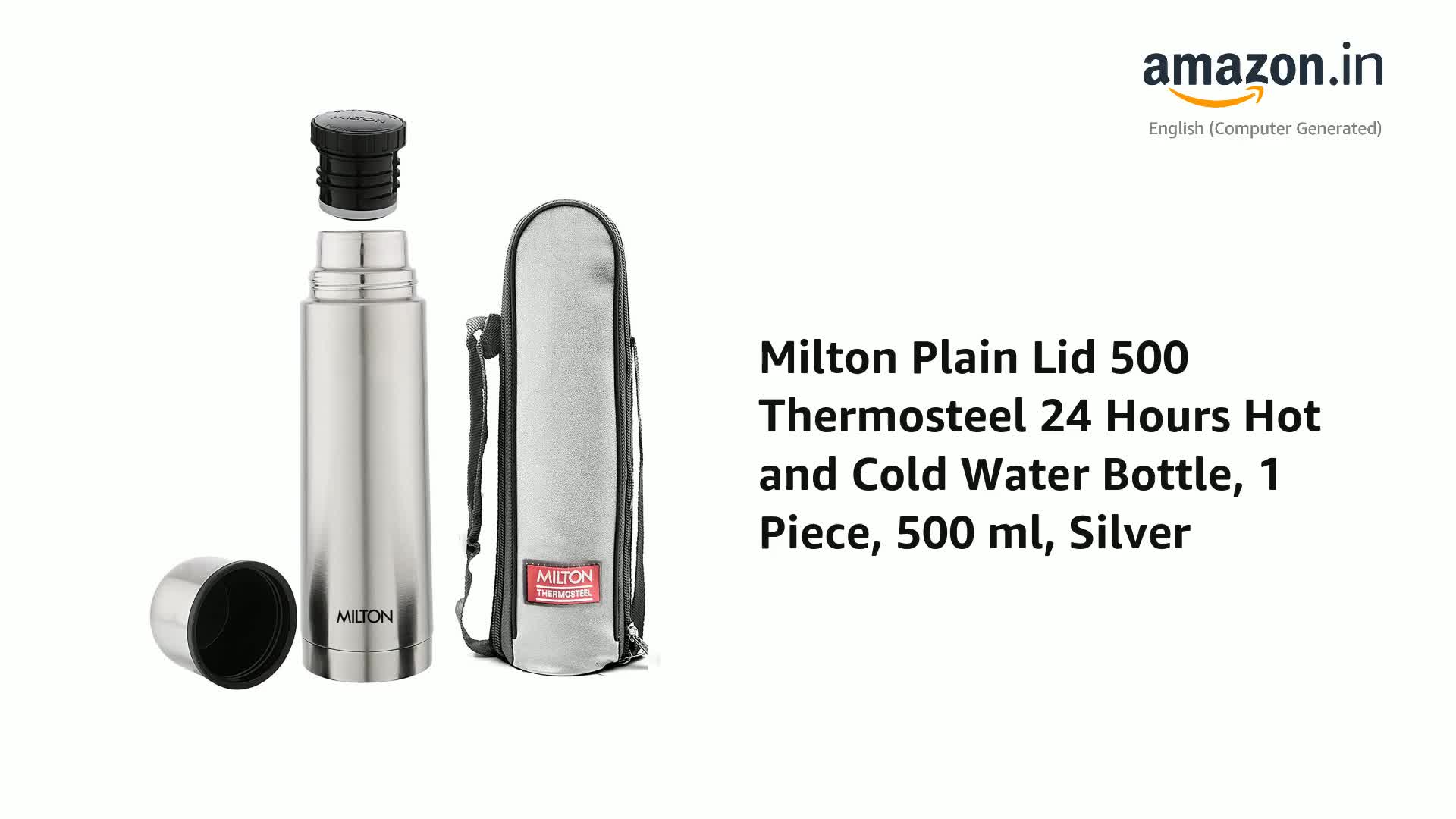 Milton Plain Lid 500 Thermosteel Water Bottle 500 ml, 24 Hr Hot and Cold I Leak Proof Lid with Jacket, ISI Certified I Vacuum Insulated I for Office, Gym, School I Silver