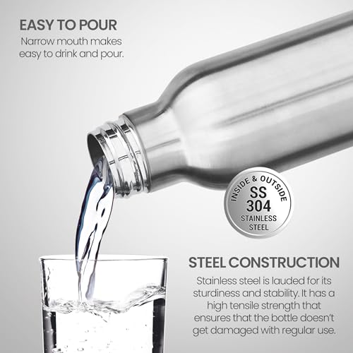 Smarty Thermosteel water bottle is made from 18/8 stainless steel. This insulated double walled vacuum water bottle is designed for maximum temperature retention that keeps your favorite drinks hot/cold without altering their temperatures for a prolonged period of time. It will keep your drinks just the way you need them throughout the day. The taste and nutritive value of the drinks remains intact for a long time making the bottles very appropriate choice for storing beverages. 100 percent food grade stainless steel. It is easy to clean and maintain. It narrow mouth makes it easy to drink without spilling wherever you go whether it is work travelling gym this thermosteel bottle is easy to carry.