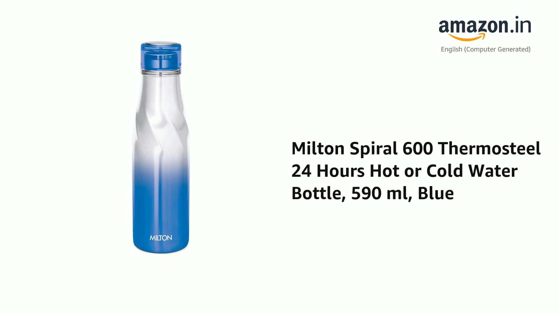 Milton Spiral 600 Thermosteel 24 Hours Hot or Cold Water Bottle, 590 ml, (Blue)