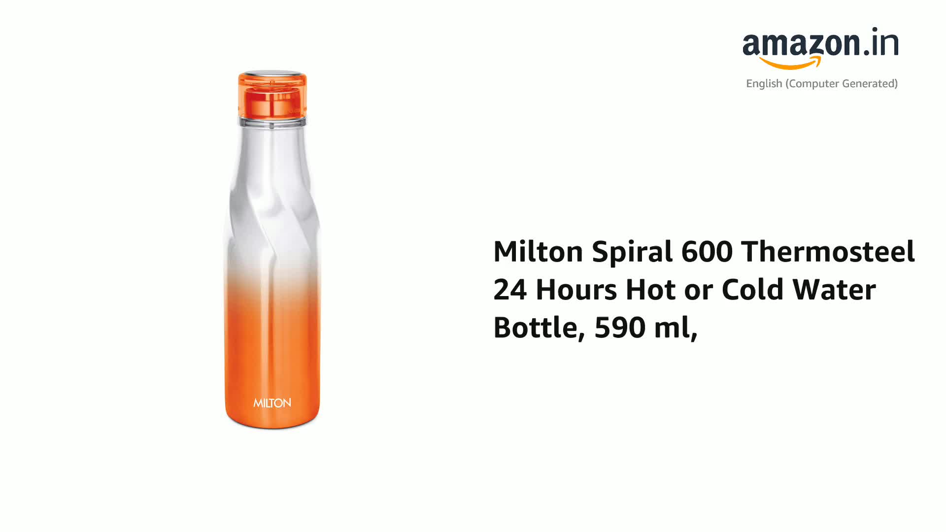 Milton Spiral 600 Thermosteel 24 Hours Hot or Cold Water Bottle, 590 ml, (Orange)