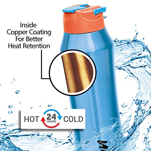 Size:Standard | Color Name:BlueMilton Stark 900 defines in a classy shape with four different colours to choose from. It is fabricated inside and outside with 18/8 quality rust-proof steel. It comes with sipper and straw for to enjoy your drinks with easy sipping. This Insulated bottle keeps your favorite drinks hot/cold without altering their temperatures for a prolonged period of time. It will keep your drinks just the way you need them throughout the day. The taste and nutritive value of the drinks remains intact for a long time making the Bottles very appropriate choice for storing beverages. Its cover protects your favorite drinks from dusts and is 100 percent leak-proof. Milton Stark 900 is an ideal companion for sports and outdoor activities.