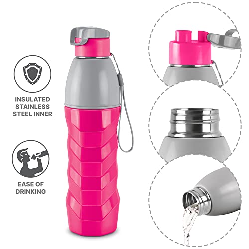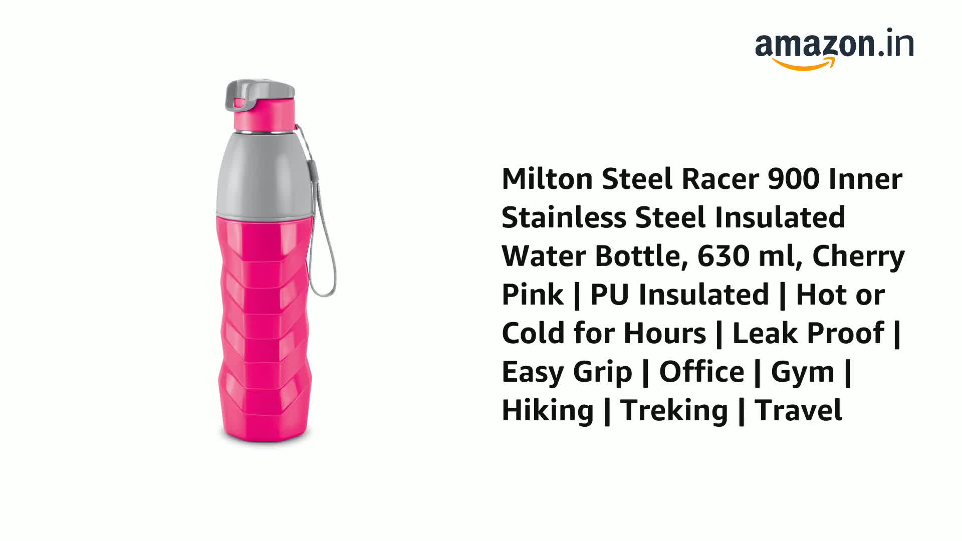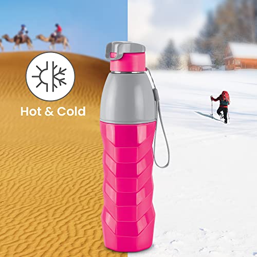 Milton Steel Racer 900 Inner Stainless Steel Insulated Water Bottle, 630 ml, Cherry Pink | PU Insulated | Hot or Cold for Hours | Leak Proof | Easy Grip | Office | Gym | Hiking | Treking | Travel