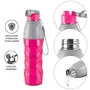 • Color: Cherry Pink; Material: Inner Steel Outer Plastic; Package Content: 1 - Piece Steel Racer Insulated Water Bottle (630 ml); Dimension in cms (L x W x H): 8 x 8 x 9.4