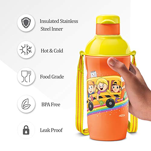 Your kid's best friend Which is important for kids to stay hydrated at home school and play. High levels of activity and competitive sports demand water and other beverages regularly for healthy development. Your child may need a bottle that works for both hot and cold liquids. This bottle is fabricated with insulation technology which keeps beverages hot or cold. The taste and nutritive value of the drinks remains intact for a long time making the bottle very appropriate choice for storing beverages. It has Flip lid with an attached sipper which makes it easy to grip. It is leak proof and easy to carry anywhere. Convenient size fits in the side pocket of bags which you can carry for school Picnic car bottle holder etc.