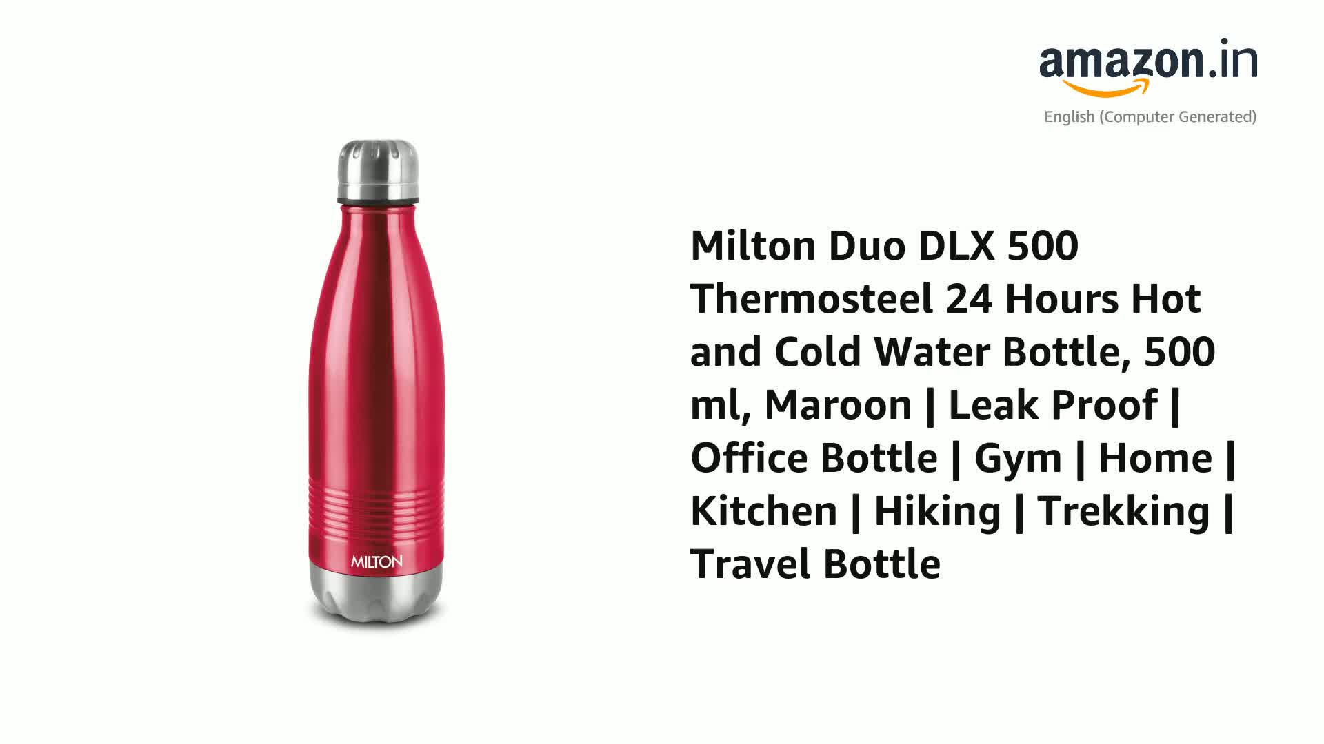 Milton Duo DLX 500 Thermosteel Water Bottle 500 ml, 24 Hr Hot and Cold I Leak Proof Lid, ISI Certified I Vacuum Insulated I for Office, Gym, School I Maroon