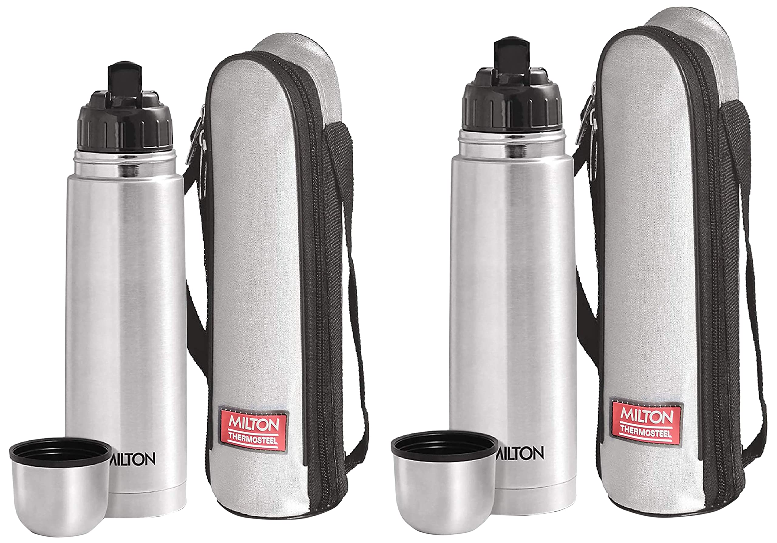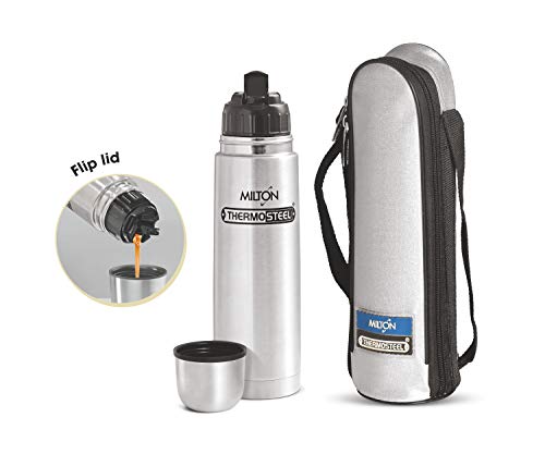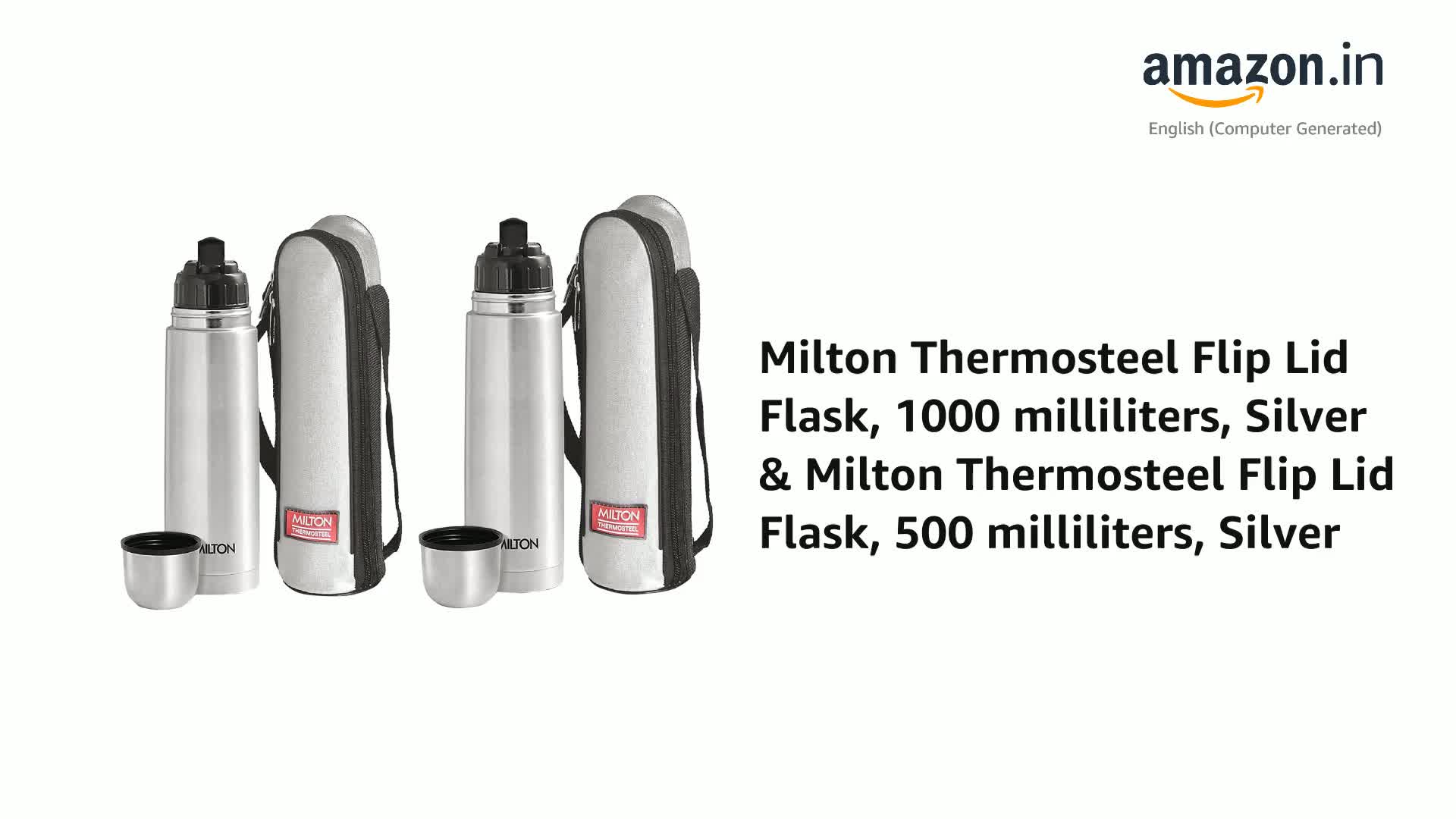 Milton Thermosteel Flip Lid Flask 1000 milliliters SilverKeeps beverages hot or for up to 24 hours. This contains about 1000ml capacity of beverages.Milton Thermosteel Flip Lid Flask 500 milliliters SilverThe product is a milton flask. The capacity is 500ml. The colour is silver.