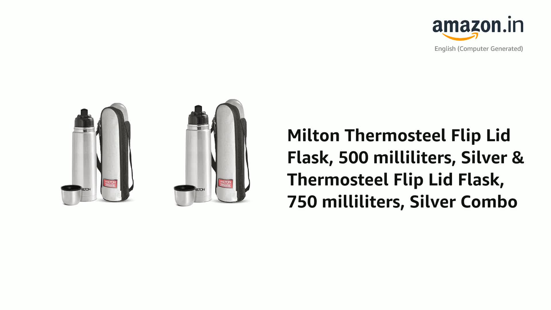 Milton Thermosteel Flip Lid Flask, 500 milliliters, Silver & Thermosteel Flip Lid Flask, 750 milliliters, Silver Combo