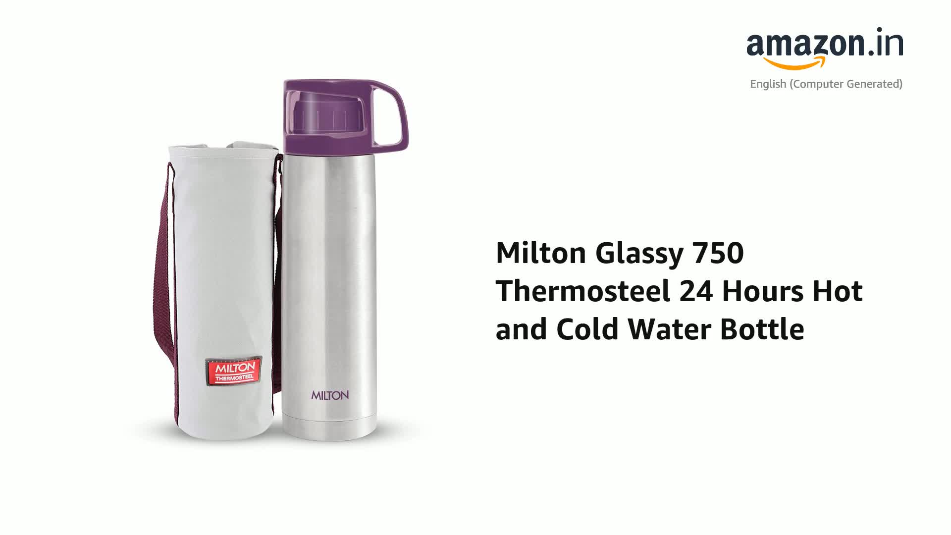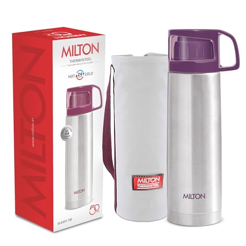 Milton Glassy 750 Thermosteel Vacuum Insulated Double Walled Flask with Drinking Cup lid & Jacket, 750 ml Water Bottles,24 Hours Hot & Cold, Easy to Carry,Rust Proof, Tea, Coffee, Travel Bottle,Purple