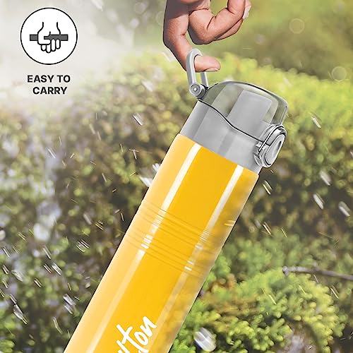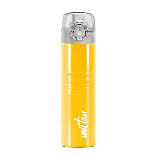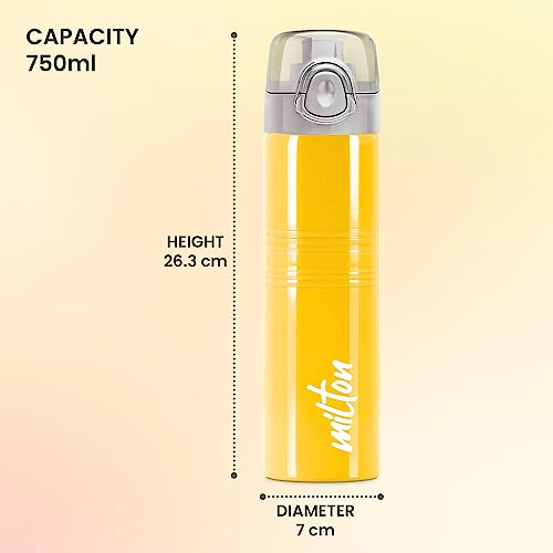 MILTON Vogue 1000 Stainless Steel Water Bottle with One Touch Safety lock, 750 ml water bottles, Single walled, Leak-Proof, Rust-free Steel Bottle, Easy Grip, Easy to Carry, Travel Bottle, Yellow