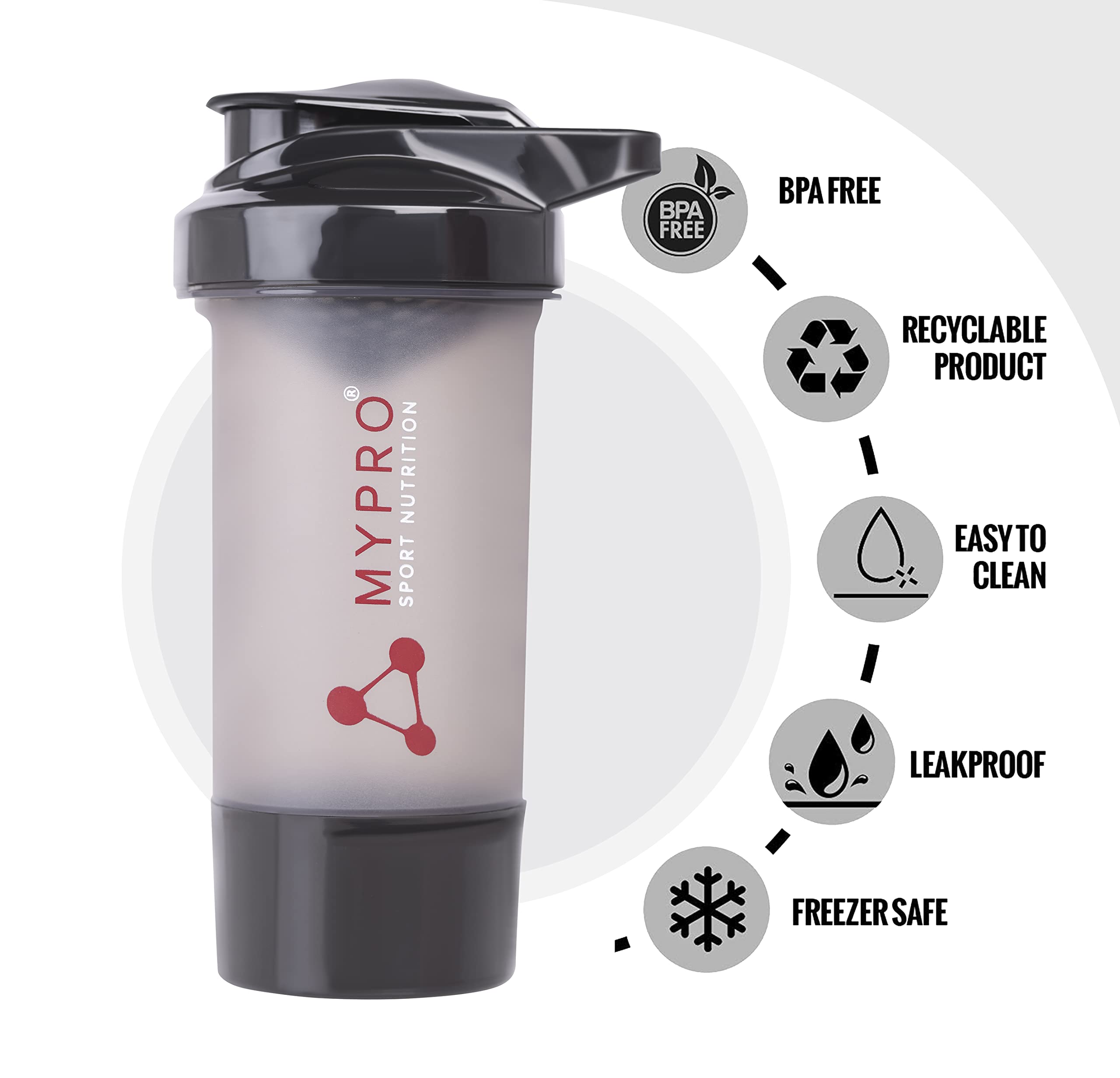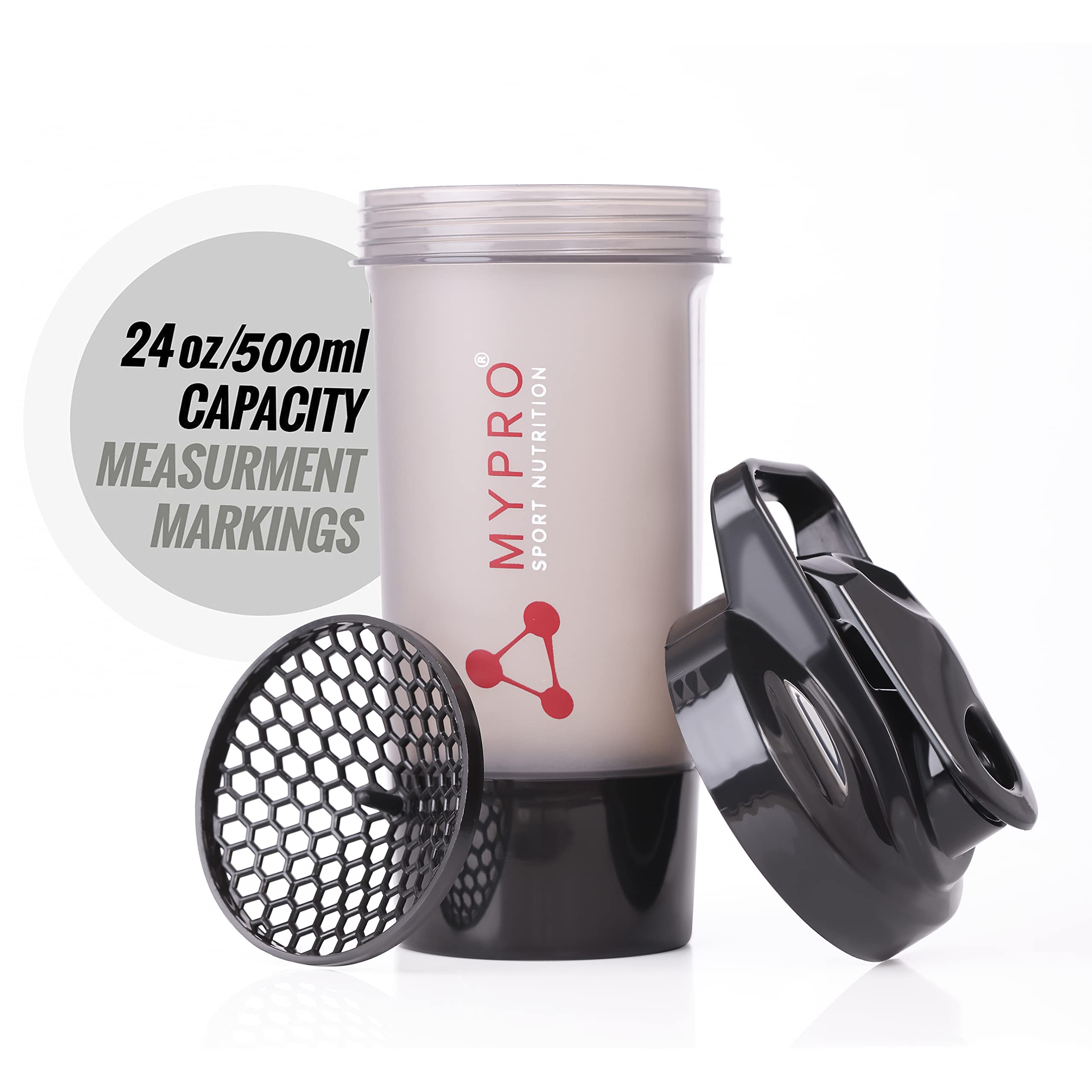 HomeKitchenContainersBottlesMypro Sport Nutrition BPA-Free 100% Leak Proof Guarantee Including Tornado Blender Gym Shaker Bottle - 500 ml /24oz- Black+ Red Color