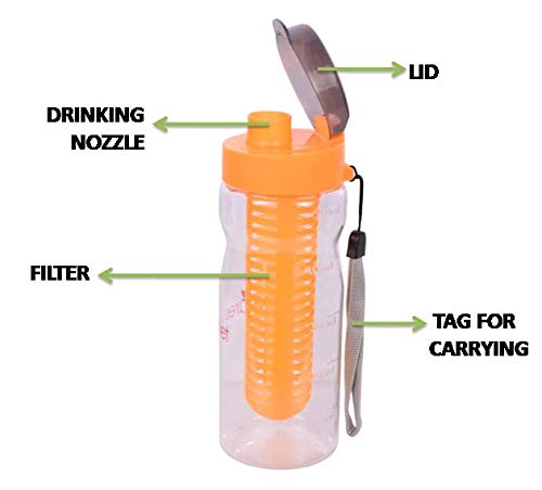 nature's velvet Lifecare Fruit Infuser Detox Bottle With Infusion Rod 500ml (Orange Colour)