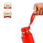 EASY TO CARRY: Easy to fit and store in hand bag and fits snugly in the refrigerator door pocket. It comes with a strap that makes carrying the bottle easy and comfortable. Made with 100% food grade material & BPA free and has an anti-skid rubber at the
