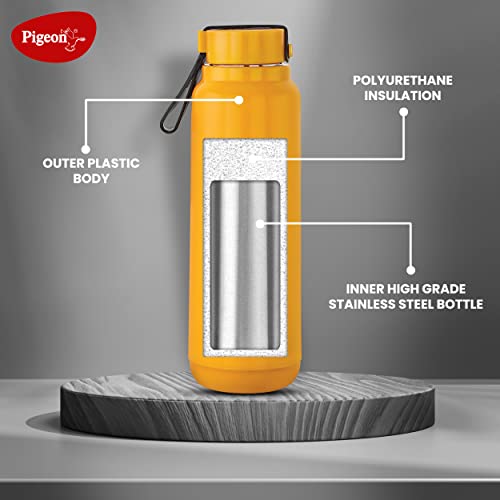 Pigeon by Stovekraft Radiant Insulated Wide Mouth Bottle 750 ml Leak Proof (Yellow)