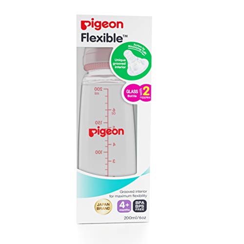 Pigeon Glass Feeding 200ml Bottle with Add Nipple, Medium, Pink