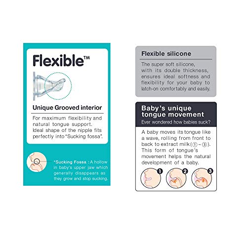 Glass Bottle is Made from Borosilicate Glass material this bottle offers excellent transparency and able to withstand high temperature sterilization process. The super soft silicone wi th i ts double thickness ensures ideal sof tness and f lexibi l i t y for your baby to latch-on comfor tably and easily.
