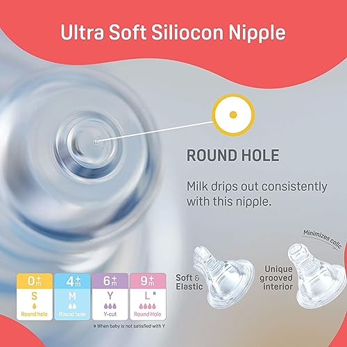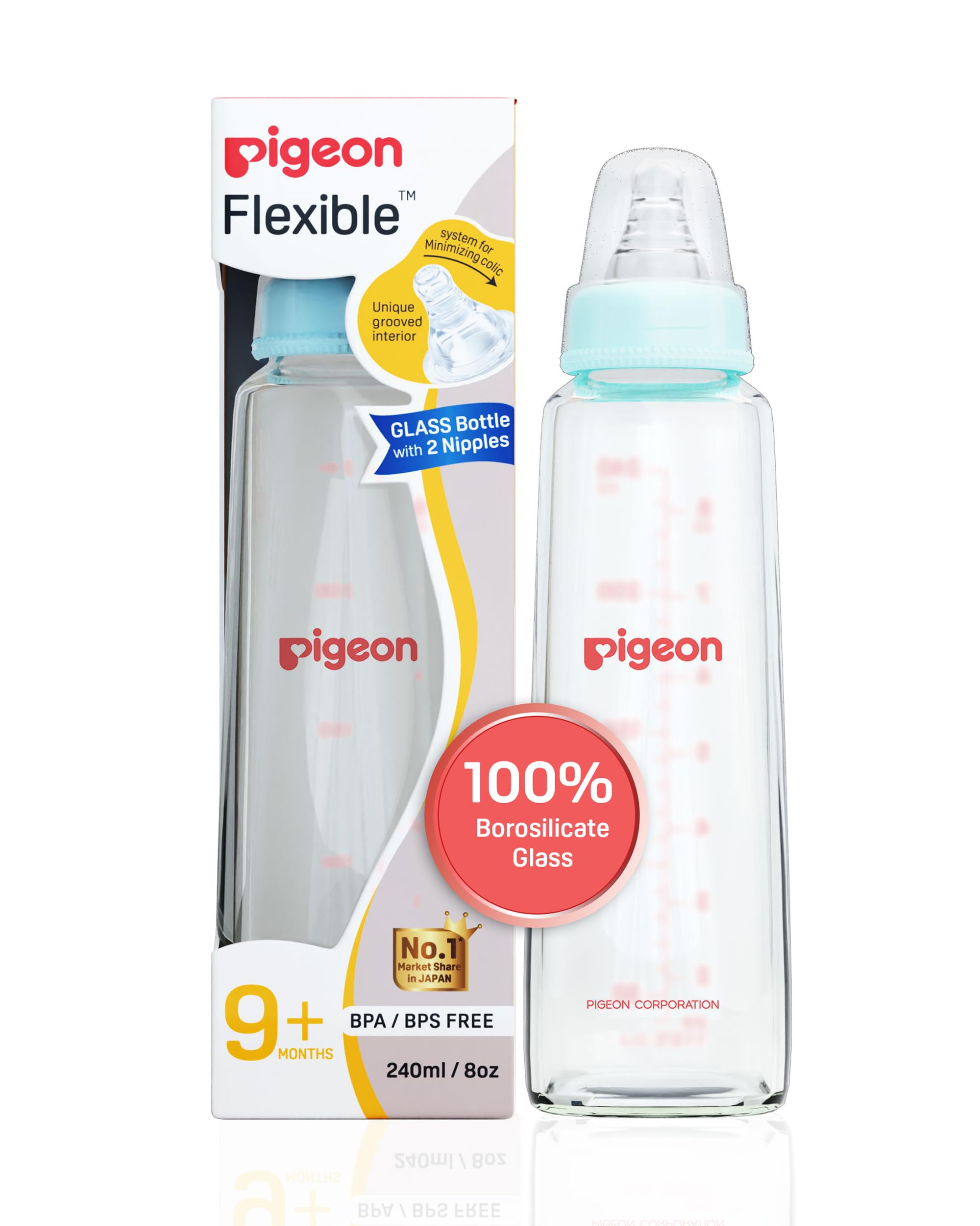 Glass Bottle is Made from Borosilicate Glass material this bottle offers excellent transparency and able to withstand high temperature sterilization process. The super soft silicone wi th i ts double thickness ensures ideal softness and flexibility for your baby to latch-on comfor tably and easily.