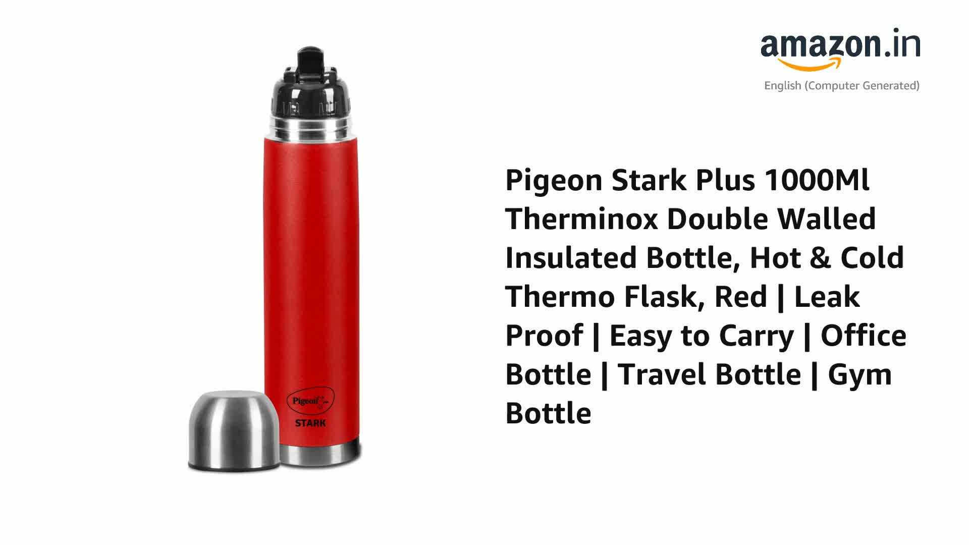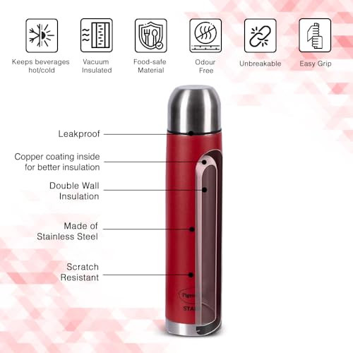 Pigeon Stark Plus 1000Ml Therminox Double Walled Insulated Bottle, Hot & Cold Thermo Flask, Red | Leak Proof | Easy to Carry | Office Bottle | Travel Bottle | Gym Bottle